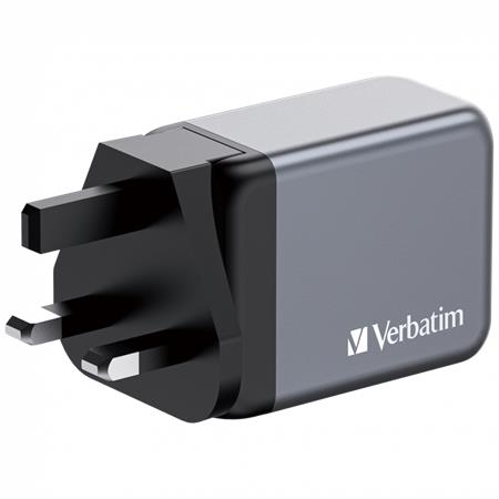 Hálózati töltő, 2xUSB-C PD (65W), USB-A QC 3.0, EU/UK/US, GaN, VERBATIM